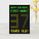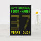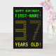 A frente deste nerd design de cartões de aniversário personalizados apresenta as mensagens "FELIZ ANIVERSÁRIO" e "37 ANOS VELHO!", juntamente com um nome de destinatário personalizado. As mensagens na frente têm um estilo de videogame de escola antiga e pixelizado. Os dígitos do grande número "37" na frente são eles próprios formados por dígitos "3" ou "7" de tamanho menor, dando a uma arte ASCII um olhar inspirado. O dentro apresenta uma mensagem de saudação de aniversário que pode ser editada. Um estilo geek, um cartão de saudação de aniversário personalizável como este pode ser uma maneira divertida de enviar uma mensagem de saudação de aniversário a alguém que comemora seu trinta e sete anos. [~Z0000366]