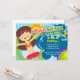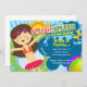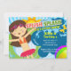 Espalhe o convite de aniversário da piscina com uma garota bonita em um tubo de piscina.