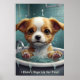 Animais bonitos e adoráveis sentados numa banheira, com gotículas de água e bolhas à volta. A imagem de trabalho de arte olha para o espectador com olhos largos e inocentes, e seus pequenos pés estão na borda da banheira. A atmosfera é bonitinha e humorística, fazer ideal para um conjunto de poster. Personalize sua poster para qualquer um por diversão e risos em sua casa ou no seu espaço de trabalho.