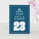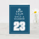 Mantenha calma, citando o 23º cartão de aniversário. Diversão Mantenha-se Calmo e continue com a citação por 23 anos. Faça sua própria mancha com número personalizado. Boa ideia do cartão de saudação para homens ou mulheres. Modelo de tipografia moderna com coroa. Cor azul ou personalizada. Personalizar com dentro de mensagem.