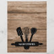 Página de divisor para o livro de receitas de madeira rustica com ilustração de utensílios de cozinha. Personalizar com categoria.