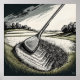 Divot King - Artista Impressão de Arte Golf: Roger Smith 25.00" x 25.00". Arte original de Roger Smith reproduziu em papel de arquivo isento de ácido de 55 lb, 10,4 pontos. Impressão de Giclee de qualidade de galeria. As tintas baseadas em pigmentos garantem a impressão de alta resolução do espectro de cores do cheio. Corresponder com uma superfície lisa. Resistente a perda com classificação de arquivamento de mais de 90 anos. Quadro disponível em todos os tamanhos padrão. Os quadros incluem as Vidraças acrílicas não-brilhantes.