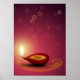 Feliz Ilustração de Diwali: diya vermelha (uma lâmpada de óleo índio em forma de xícara) com uma mandala ornamental indiana e uma paisley em um belo fundo de um barco.
