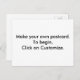 Design os seus postais personalizados online. Clique em Personalizar para começar. Clique em Adicionar imagem para carregar uma imagem, imagem a partir do computador. Você pode clicar na imagem depois que ela for carregada para movê-la e redimensioná-la. Você pode excluir o texto que é mostrado pelo espaçamento inverso na caixa de texto ou digitar em novo texto. Após digitar o texto, você pode escolher o estilo, o tamanho e a cor da fonte (f). Obrigado por comprar CherylsArt no Zazzle.