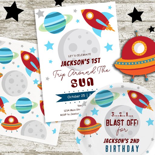 Tema de aniversário espacial infantil. É fácil personalizar. Também disponível como download digital! Primavera, festas de verão