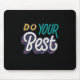Push through your day with purpose using this “Do Your Best” mouse pad. Featuring colorful, playful lettering on a sleek black background, this modern design adds a spark of positivity and encouragement to any workspace. Great for students, remote workers, or anyone needing a boost of inspiration while at their desk.
