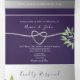 Elegante convite de casamento com caligrafia moderna, folhagem em aquarela roxa com coração de corda falsa prateada simples e foto personalizada do casal.