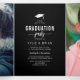 Celebre os 2 formandos com esses convites trifold de formatura dupla econômicos com fundo preto elegante, fotos dos irmãos, a frase 'eles conseguiram!' e um modelo de festa / anúncio fácil de personalizar.