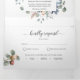Escreva todos os detalhes para o seu casamento com isto tudo num único convite floral elegante, sem necessidade de cartões de inserção extras ou Rsvp! Seção interna do meio mostrando os detalhes do convite, enquanto na seção superior você pode adicionar qualquer recepção, alojamento, transporte, presentes, detalhes do site que quiser. Os convidados abaixo podem facilmente cortar o cartão postal RSVP e colocar no correio! Edite informações em caixas de texto ou selecione personalizar para fazer ajustes na tela de edição. Excelente e elegante coloração aquosa pintou detalhes florais em todas as seções com flores e folhagem em cinzas de madeiras, creme de manteiga, azul empoeirado, pincel, pêssego, rosa poeirento e tons verdes. Folhagem rosa pálida e Eucalyptus verde. Parte da nossa coleção de "Casamentos Felizes e Eventos".