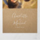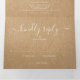 Convite de casamento tri-fold completo com tipografia elegante e sua foto especial em um fundo kraft rústico. O convite inclui detalhes da informação dos convidados para a celebração e um cartão RSVP destacável. Criado por Thisisnotme©
