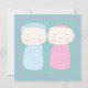 Avise aos seus hóspedes a notícia do excelente com esta design com uma doce ilustração de dois bebês dormindo - um menino e uma menina. Personaliza-se facilmente com as suas informações e com o conjunto completo! Os itens correspondentes incluem postagem, cartões de agradecimento e adesivos para selar seus convites ou anúncios de chuveiros para bebês.