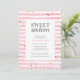 Trendy e moderno e doce Convite de aniversário com dezesseis listras cor-de-água cor-de-rosa e correspondência com a página traseira e uma borda recortada. © Mini Moi Impressões