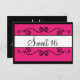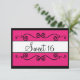 Convite rosa a quente com preto e etiqueta, também pode ser alterado para placas de mesa