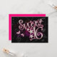 O texto no verso deste convite de 16 anos é perfeitamente personalizável. Para alterar o texto, use a opção personalizar. Para alterações mais abrangentes, como alterações na fonte, cor da fonte, tamanho da fonte ou layout de texto, use a opção personalizar. As cores neste convite são rosa quente e preto.