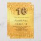 Um convite moderno, na moda e glamouroso para uma doce festa de aniversário 16, 16. Um fundo de aparência falsa de ouro com pingos de brilho sujo, aparência de pingar tinta. O nome é escrito com um moderno estilo escrito à mão. Personalize e adicione os detalhes da sua festa. O número 16 é escrito com uma fonte de estilo de balão, script.