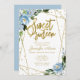 Doce 16 Folha de Ouro de Convite Azul Dusty Floral