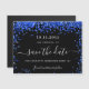 Um fundo preto decorado com confete azul real. Personalize e adicione uma data e nome/idade. O texto: Salvar a Data é gravado com um script de estilo com letra de tendência grande.