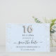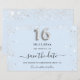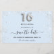 Uma garota e moda Salve o cartão de data para uma doce festa de aniversário 16, 16. Um fundo azul bebê decorado com pó falso de prata brilhante. Personalize e adicione uma data e nome/idade. O texto: Salvar a Data é gravado com um script de estilo com letra de tendência grande. Número 16 com uma fonte no estilo do balão.