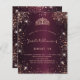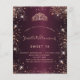 Para um doce elegante 16, 16 anos. Uma cor de fundo arrojada. Decorado com rosa dourado falso brilho e tiara, coroa. Personalize e adicione um nome, idade e detalhes da festa. O nome é escrito com um script de estilo manuscrito. 1 folha = 1 convite impresso de borda a borda.