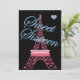 Bonito Tres Chic Glitzy Trendy Pink, Blue and Black Sweet Sessenta Convocação de Aniversário da Torre Eiffel de Paris.