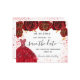 Uma moça e moda Salvem a data para uma doce festa de aniversário 16, 16. Rosas vermelhas decoradas em fundo branco, faíscas brilhantes vermelhas e um vestido vermelho. Personalize e adicione uma data e nome/idade. O texto: Salvar a Data é gravado com um script de estilo com letra de tendência grande.