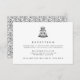 Mantenha a festa! Os inserts de convite para recepção de casamento em preto e branco sofisticados apresentam uma ilustração de bolo de casamento em camadas no topo, com o horário, local e detalhes adicionais da recepção abaixo. O verso dos cartões apresenta um padrão de videira e broto botânico em preto e branco correspondente.