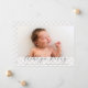 Este doce e simples anúncio de nascimento neutro apresenta um fundo gingham cinza claro com caligrafia e tipografia elegantes. Este design também está disponível em rosa, azul e verde... Veja a coleção para itens coordenados!
