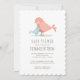 Uma doce ave mãezinha com seu novo filho nesta ilustração adorável de Kat Parrella. Aqua azul e com história colorida permite que os hóspedes saibam que uma garota é esperada.