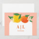 O cartão de agradecimento monogramado Sweet Citrus Flat é a adição perfeita para agradecer aos seus convidados. Esta coleção apresenta um design moderno arqueado com laranjas pintadas, limões e flores cítricas. Combine este cartão com um chá de panela, aniversário ou celebração de verão todos os dias.