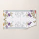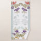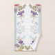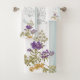 Conjunto de Toalhas de Banho com dois acentos florais e botânicos com flores de cinza roxa, vermelha e azul com folhas verdes de azeitona, sobre fundo branco. A cor de fundo pode ser alterada.