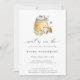 Doce como pode ser, convite para chás de fraldas. Abelhas de aquarela, pote de mel e arranjo floral de jardim de Verão. A parte traseira da placa apresenta cor amarela coordenadora sólida.