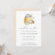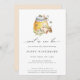 Doce como pode ser, convite para chás de fraldas. Abelhas de aquarela, pote de mel e arranjo floral de jardim de Verão. A parte traseira da placa apresenta cor de pêssego de coordenação sólida.