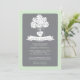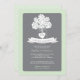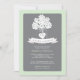 Uma bela ilustração de jarro de pedras brancas que transborda com flores brancas de hydrangea e um pequeno crachá cardíaco que diz, "bebê". Tudo isso em um esquema de cor neutro de gênero de verde-menta-suave e cinzas-pomba, este convite para Chás de fraldas certamente agradará e é bonito para um chá-país-chique rústico, festas de jardim, ou chá-mason jar popular.