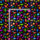 Um teste padrão bonito para o Dia das Bruxas que caracteriza doces dos desenhos animados, pirulitos, doces e milho de doces em um esquema de cores do arco-íris do rosa, do amarelo e do roxo vermelhos, alaranjados, verdes, azuis, brilhantes.