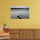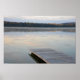 Wooden dock on calm misty morning lake poster