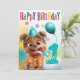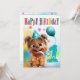 Cute Terrier in Party Hat with Horn, Celebrates a Birthday.