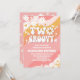 Celebre o dia especial do seu pequeno com este convite de aniversário "Two Groovy" inspirado no estilo retrô! Com listras onduladas em tons pastéis, margaridas, sinais de paz, corações, estrelas e borboletas, este design divertido captura a alegria dos anos 70 com um toque moderno. Perfeito para a festa de 2º aniversário de uma menina, este convite personalizável define o tom para uma celebração alegre e boêmia repleta de paz, amor e alegria. Personalize com o nome da criança, detalhes da festa e informações de RSVP para criar um souvenir único que os convidados adorarão.