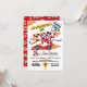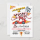 Dois convites de festas de segundo aniversário de carros rápidos. Apresenta um carro de corrida vermelho com chamas, bandeiras com verificação, pneus e marcas de pneus e fonte DUO decorada. Perfeito para uma garota ou garoto que ama carros!