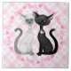 Dois gatos bonitos (siameses), um preto, um branco e cinza em fundo rosa dentro de um círculo de corações e amor. de Ricaso cu delightful-doodles.com