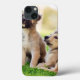 Dois filhotes de German shepherd irmãos sentados na grama.