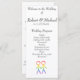 Este cartão de programa apresenta um design bonito e elegante para sua cerimônia de casamento ou recepção. O gráfico no topo mostra dois homens, na forma de figuras elegantes de palitos, de mãos dadas. Os números são coloridos num belo arco-íris, simbolizando amor e diversidade. Este cartão é uma maneira maravilhosa de trazer um toque coeso e significativo ao seu casamento, compartilhando a ordem dos eventos e apresentando sua festa de casamento aos seus convidados.
