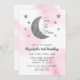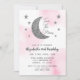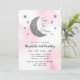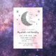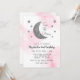 Duas da lua! segundo aniversário com lua prateada e estrelas com fundo de cor rosa