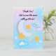 Este adorável cartão de agradecimento de aniversário "Dois para a Lua" apresenta um tema sonhador de espaço exterior com nuvens pastéis suaves, estrelas cintilantes e uma lua sorridente.