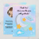 Perfeito para compartilhar sua gratidão com familiares e amigos que ajudaram a tornar a celebração cósmica e memorável, este cartão adiciona um toque personalizado e caloroso com a foto e o nome do seu pequeno astronauta.