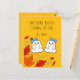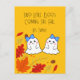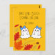 Um jeito bonito de anunciar seus gêmeos chegando ao outono! Dois fantasmas adoráveis e folhas de outono na frente. Sala atrás para sua mensagem personalizada.
