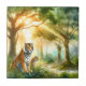 Uma floresta serena toma banho com o brilho suave do sol, criando um dia pacífico. Em meio ao magro verde, tigres com um olhar corajoso em seus olhos, incorporando a beleza selvagem e a força da natureza. As cores vibrantes das árvores e a luz do sol quente aumentam o esplendor natural da cena, fazer-a uma representação cativante da essência tranquila, mas poderosa, da floresta.