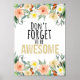 Inspirational quote "don't forget to be awesome" poster. Nursery wall art. Floral girls room decor.