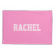 A moça original Dorm Sweet Dorm em um travesseiro personalizado com o nome na parte de trás em caracteres branco retro Varsity com um fundo rosa-quente bonito para a decoração da Escola Dorm Room. Há itens correspondentes; um travesseiro decorativo, uma lâmpada de mesa, porta copos de cortiça, um cobertor de lança de velo, etc.