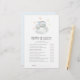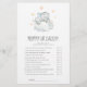 Este jogo de "mamãe ou pai", pequeno elefante dormindo, é perfeito para um chá de fraldas simples. O design moderno apresenta um animal de safari, moderno e agudo, que dorme numa nuvem macia com estrelas amarelas cintilantes. Você pode personalizar as perguntas do jogo clicando no botão "personalizar".