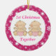 O primeiro ornamento maravilhoso do bebê do Natal junto manda bebês diapered rosa do gêmeo da menina com "ø Natal junto" citar no fundo do floco de neve. Um presente bonito da lembrança para um chá de fraldas gêmeo ou um stuffer da meia para os pais dos gêmeos.
